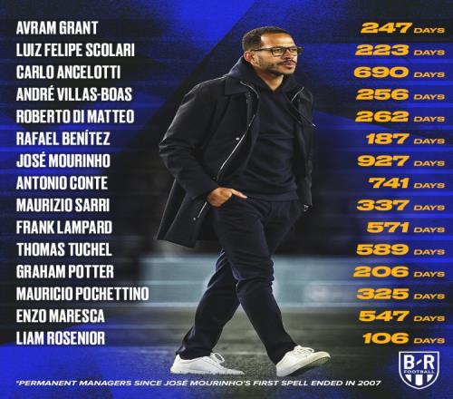 以下為2007年以來,切爾西歷任主帥任職時間: