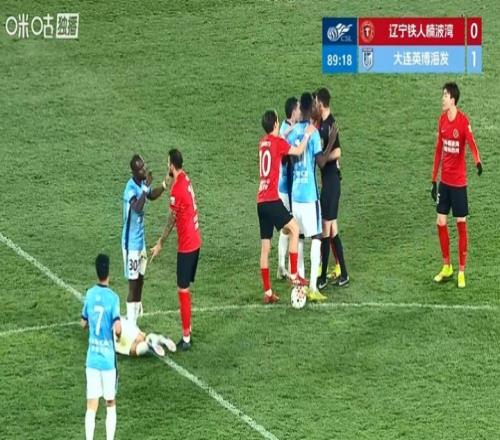 比賽第90分鐘,熱菲尼奧帶球推進(jìn),張華晨戰(zhàn)術(shù)犯規(guī)拉倒熱菲尼奧,熱菲尼奧順勢推翻張華晨,兩人各吃一張黃牌。