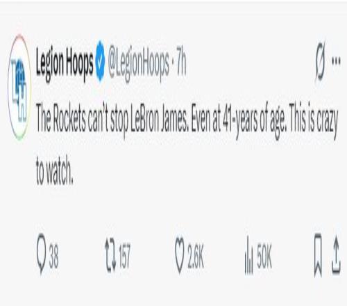 美媒LH:就算勒布朗-詹姆斯已經(jīng)41歲高齡,但火箭依舊無法阻擋他,這太不可思議了。
