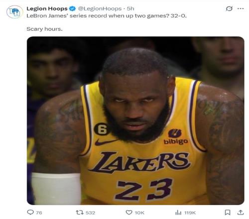 相信賽后大家都看到,當(dāng)勒布朗在系列賽連贏兩場后(2-0)領(lǐng)先,他系列賽是32勝0負(fù),換言之勒布朗已經(jīng)觸發(fā)了晉級(jí)概率,勒布朗從第一場就露出死亡之瞳就是為了這一刻?