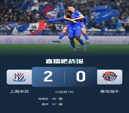 體育播報4月22日宣 北京時間4月22日20:00,中超聯(lián)賽第7輪上海申花迎戰(zhàn)青島海牛的比賽在上海體育場進行,上半場高天意、拉唐頭球造險,牟鵬飛多次精彩撲救,雙方均無建樹,半場結(jié)束,申花0-0青島海牛。下半場特謝拉補射破門打破僵局,馬納法助攻蓋伊抽射擴大比分,最終申花2-0海牛豪取四連勝,申花5勝2平積7分升第5,海牛1勝2平4負(fù)積-2分居第15。