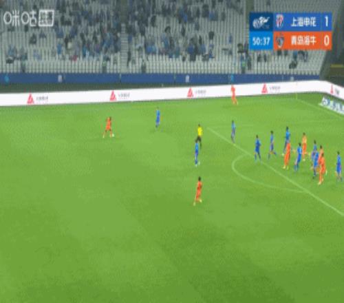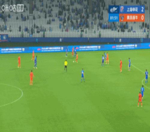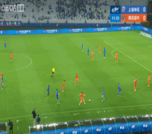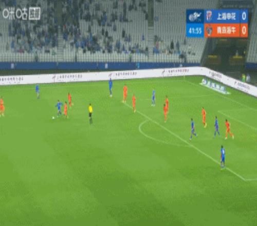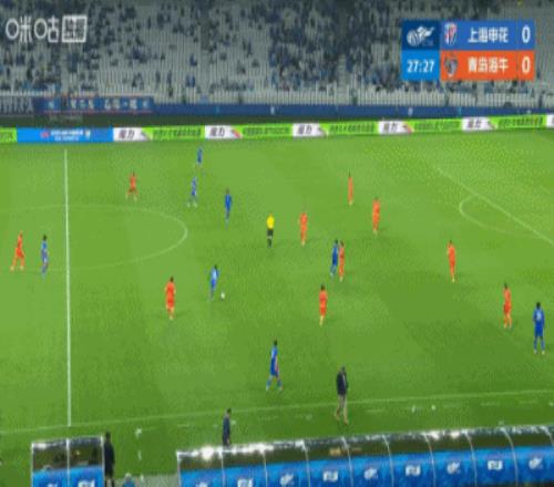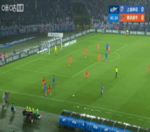 上半場補時4分鐘,上海申花0-0青島海牛。