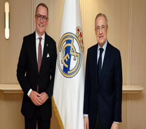 皇馬主席弗洛倫蒂諾在貴賓看臺接見了由該兄弟會主席拉蒙-馬特奧斯帶隊、專程從洛爾卡趕來的代表團(tuán)。