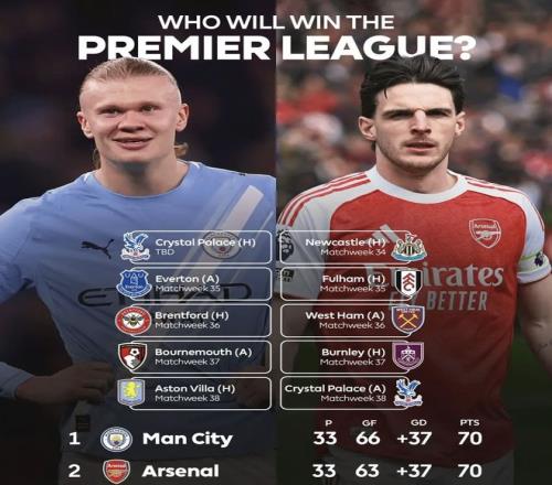 在英超積分榜上,目前曼城、阿森納同積70分,凈勝球均為27個,曼城的進(jìn)球數(shù)比阿森納多3個,曼城反超阿森納來到英超第1位。在本賽季剩余的英超比賽中,曼城的對手包括水晶宮、埃弗頓、布倫特福德、伯恩茅斯以及維拉,而阿森納要踢紐卡、富勒姆、西漢姆聯(lián)、伯恩利以及水晶宮。曼城還有足總杯半決賽任務(wù),對手是英冠的南安普頓,槍手要在歐冠半決賽中跟馬競進(jìn)行兩回合消耗戰(zhàn)。