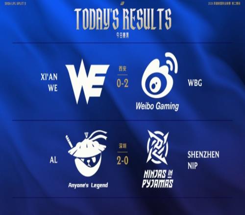 LPL今日賽果:WE依舊不在今天06墊底!AL再取一勝排名第五