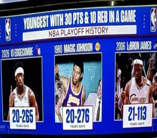 憑借著本場比賽,埃奇庫姆在20歲265天,季后賽單場打出30分10籃板,一舉超越邁克爾·喬丹;除此之外,NBA史上僅有兩位新秀后衛(wèi)在季后賽打出30+10,前一人是魔術師,另一個就是埃奇庫姆了。