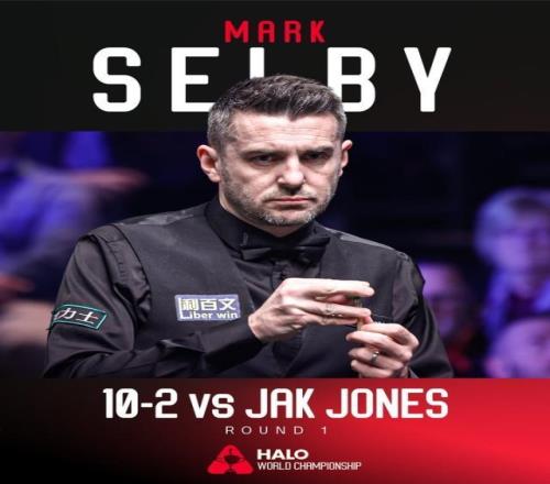斯諾克世錦賽32進16輪次,塞爾比10比2瓊斯晉級。全場比賽馬克·塞爾比打出三桿50+(67、50、78),杰克·瓊斯打出兩桿50+(54、90)第一階段戰(zhàn)罷馬克·塞爾比7比2領(lǐng)先杰克·瓊斯,第二階段塞爾比連勝三局,最終10比2戰(zhàn)勝對手晉級16強。
