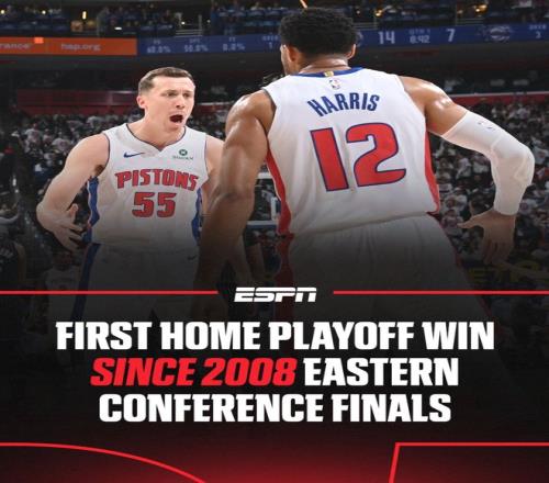 根據(jù)ESPN的統(tǒng)計(jì),底特律活塞上一次主場(chǎng)贏球還要追溯到2008年,也就是說(shuō)這支活塞打破了18年的魔咒,活塞季后賽主場(chǎng)11連敗的恥辱紀(jì)錄就此終結(jié)!