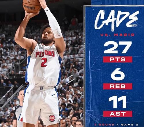 活塞是東部第一,但是季后賽第一場(chǎng)比賽11分之差輸給了魔術(shù),今天的比賽他們是有壓力的,目標(biāo)就是要爭取復(fù)仇!坎寧安依然是活塞的箭頭球員,雖然面臨魔術(shù)的嚴(yán)防死守,但全場(chǎng)19投11中還是拿到了27分6籃板11助攻的數(shù)據(jù),得分和助攻都是隊(duì)內(nèi)第一,唯一美中不足的的是罰籃命中率只有50%,8罰僅4中,另外還出現(xiàn)了7次失誤,好在對(duì)結(jié)果沒有太大的影響。