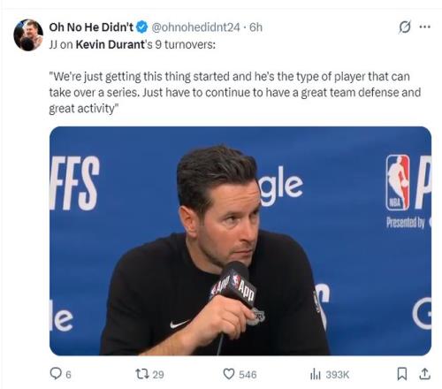 雷迪克談到讓杜蘭特出現(xiàn)9次失誤,他表示:我們就是從開場(chǎng)就執(zhí)行我們的計(jì)劃,我們都知道他是那種可以掌控整個(gè)系列賽的球員,我們每一個(gè)人都在努力消耗他完成我們指定的團(tuán)體防守策略。