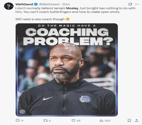 魔術(shù)媒體寫道:我通常不會為莫斯利辯護(hù),但這場比賽的慘敗跟他無關(guān),他無法執(zhí)教一群連空位都無法命中的軟蛋。(不過還是需要一個(gè)新教練)