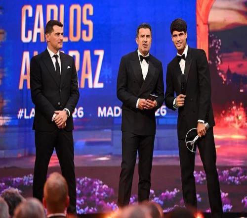 在年度最佳男運動員獎評選中,阿爾卡拉斯戰(zhàn)勝奧斯曼·登貝萊、蒙多·杜普蘭蒂斯、馬克·馬奎斯、塔代伊·波加查以及揚尼克·辛納,首次獲得該獎項。