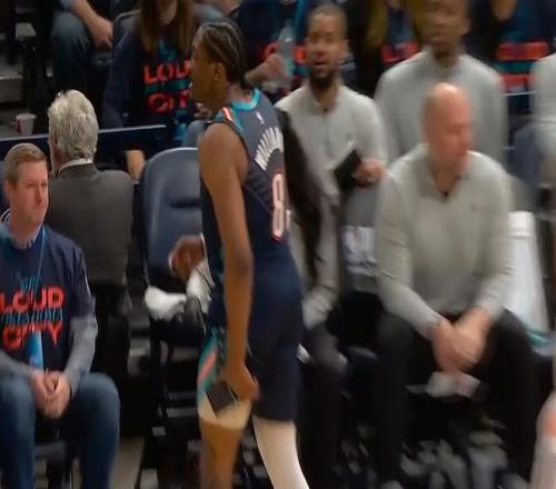 不過,雷霆在這一戰(zhàn)折損了杰倫·威廉姆斯。杰倫威在第三節(jié)一次上籃不中時(shí)落地受傷,他的手一直摸著左大腿,隨后退出了比賽。