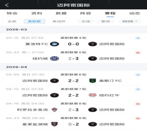 本場(chǎng)比賽邁阿密?chē)?guó)際客場(chǎng)取得了零封,這也是球隊(duì)近1個(gè)月來(lái)的首次零封,上次零封是3月15日0-0夏洛特FC。邁阿密?chē)?guó)際目前9輪美職聯(lián)近18球丟14球