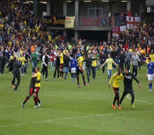 在這種緊張刺激且結(jié)局落差巨大的賽制下,誕生了許多世界足壇名場面,其中最出名的當(dāng)屬“沃特福德奇跡”:2013年英冠附加賽半決賽次回合,沃特福德在主場迎戰(zhàn)萊斯特城,全場傷停補(bǔ)時第7分鐘,萊斯特城在總比分2-2時獲得點球,只要將這粒點球打進(jìn),他們就能踏入決賽的大門,但是沃特福德門將阿穆尼亞神勇?lián)涑?,隨后沃特福德球員大腳解圍并發(fā)動快速反擊,在一連串配合后由迪尼破門,沃特福德完成絕殺。迪尼進(jìn)球后脫掉球衣瘋狂慶祝,數(shù)千名球迷沖入場內(nèi)參與慶祝。這場比賽也被許多人認(rèn)為是足壇歷史上最偉大的逆轉(zhuǎn)之一。