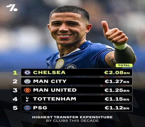 足壇近10年引援投入榜:切爾西20.8億歐居首,曼城12.7億第二