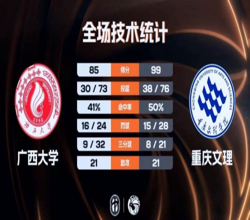 末節(jié)比賽,兩隊打得依舊是難解難分,不過重慶文理的籃板球優(yōu)勢明顯,這也讓他們稍稍獲得場上優(yōu)勢,隊內(nèi)有多達(dá)三人籃板球上雙,廣西大學(xué)沒能再完成反超,最終重慶文理99-85力克廣西大學(xué)迎來開門紅。