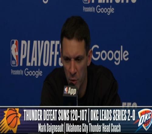 體育播報(bào)4月23日宣 今日NBA西部季后賽首輪G2,雷霆120-107拿下太陽,大比分2-0領(lǐng)先。賽后戴格諾特接受了媒體采訪,以下為采訪全文。