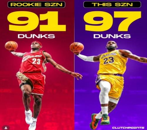 北京時間4月24日,41歲的詹姆斯本賽季迎來第23個賽季,他如今單核率領(lǐng)湖人總分2-0領(lǐng)先火箭,令人驚嘆于他的寶刀不老。根據(jù)美媒ClutchPoints統(tǒng)計的詹姆斯本賽季97扣,超過新秀賽季91扣,也是創(chuàng)造近8季湖人生涯新高,無疑堪稱是逆生長。