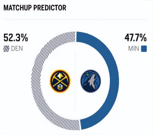 賽前,美媒ESPN對本場比賽進(jìn)行了勝率預(yù)測,掘金隊(duì)勝率降至52.3% ,森林狼勝率則由G2的27.2%飆升至47.7%,勢均力敵了。