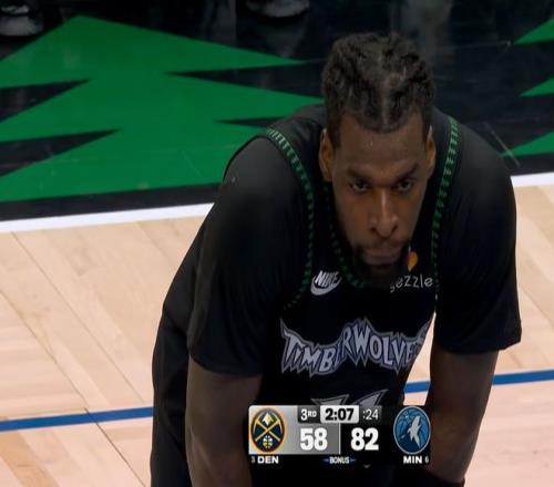 第四節(jié)決戰(zhàn),愛德華茲領(lǐng)到本場第5犯,隨后再一次徑直走回更衣室,不單單受裁判針對,傷病也受影響。麥丹突然起飛單臂劈扣,森林狼最后4分鐘領(lǐng)先掘金17分。比賽失去懸念,最終,森林狼以113-96再次爆冷擊敗掘金,大比分改寫為2-1反超,西部格局大變!