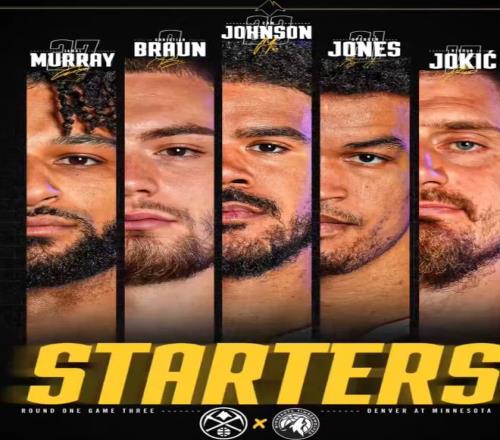 首發(fā)陣容方面,掘金隊(duì)這邊,戈登和沃特森同時(shí)缺陣,教練排出的首發(fā)五人組為:賈馬爾-穆雷、布勞恩、約翰遜、斯賓塞-瓊斯、約基奇;森林狼這邊,愛德華茲繼續(xù)帶傷出戰(zhàn),首發(fā)陣容則為:迪溫琴佐、愛德華茲、麥克丹尼爾斯、蘭德爾、戈貝爾。