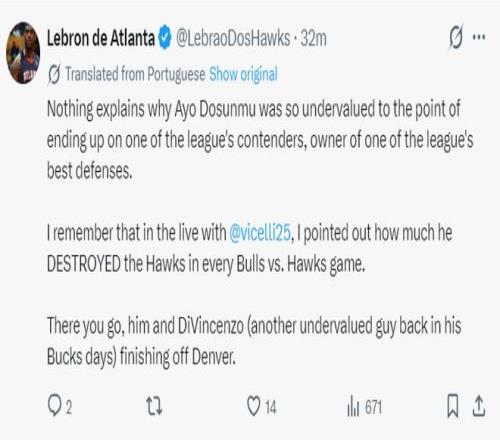 賽后美媒寫道:沒有人能解釋多森姆的價值被低估,他已經(jīng)是一支爭冠球隊的核心,而且這支球隊還是聯(lián)盟中防守最出色之一。我之前就指出他在公牛VS老鷹的比賽中防守出色,他與迪溫琴佐搭檔合力撕碎了掘金后場。