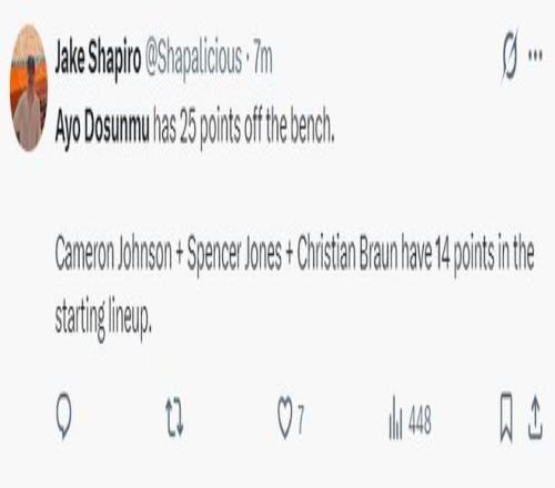 他此役一個人的得分超過了掘金卡約+斯潘塞-瓊斯+布勞恩,這就是多森姆的能力。