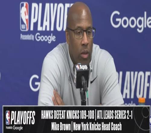 體育播報4月24日宣 尼克斯客場108-109再負(fù)老鷹,大比分1-2落后。賽后邁克·布朗接受了媒體采訪,以下為采訪全文。