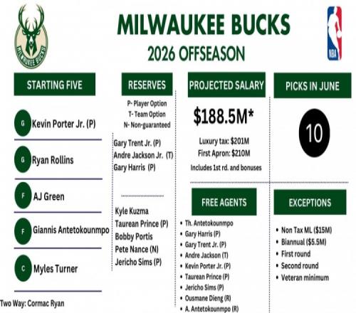 雄鹿休賽期情況:小波特手握球員選項字母哥哥&字母弟合同到期 Twitter 2026-04-24 18:02:35 體育播報4月24日宣 今天,薪資專家Bobby Marks在社媒上盤點了雄鹿今年休賽期的薪資情況。其中,小加里·特倫特、小凱文·波特和泰肖恩·普林斯均手握球員選項,字母哥哥和字母弟均合同到期。 籃球NBA雄鹿 上一篇: 上面有人美媒爆料:NBA裁判運營主管是15年老雷蜜!下一篇: 賈勒特阿倫大帽馬穆扣籃被吹犯規(guī)騎士挑戰(zhàn)成功改判爭球