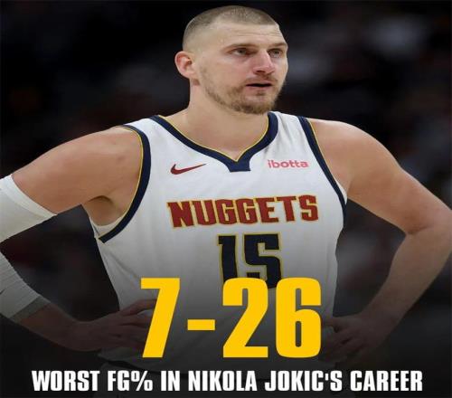 大概是什么概念呢?約基奇本場投籃26中7,命中率僅為26.9%,刷新了個人生涯季后賽的最低紀錄。