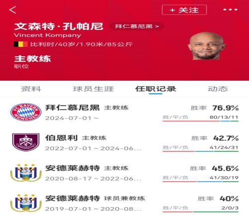 2023/24賽季,拜仁德甲丟冠,賽季中提前宣布圖赫爾賽季結(jié)束后下課,孔帕尼成為拜仁新任主帥。而在那之前,孔帕尼僅執(zhí)教過(guò)安德萊赫特和伯恩利,他帶領(lǐng)伯恩利從英冠奪冠升級(jí)后,又在當(dāng)賽季降回英冠。