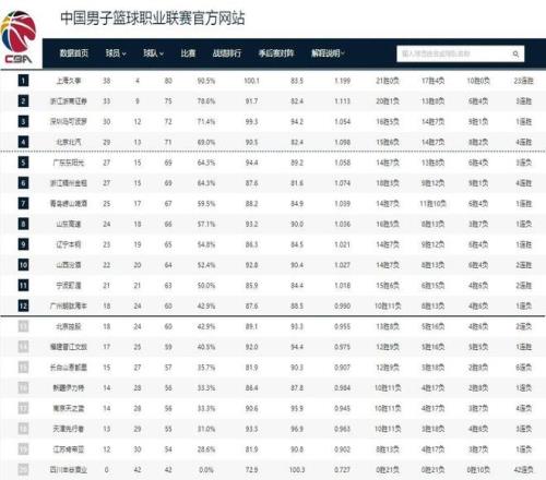 CBA最終排名!上海榮獲冠軍,北京第四廣東又輸球北控?zé)o緣季后賽
