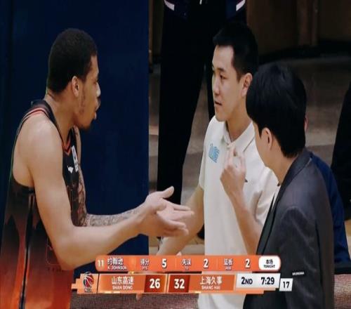 上海男籃連續(xù)打成2+1,而珀塞爾和約翰遜卻接連出現(xiàn)失誤,邱彪指導(dǎo)非常不滿將其換下。謝智杰反擊三分命中,山東男籃將分差縮小到4分。而李添榮、偰李永煒的手感也不差,雙方你來(lái)我往比分始終僵持。克里斯因?yàn)椴粷M裁判的吹罰,吃到技術(shù)犯規(guī),從而累計(jì)4次被換下場(chǎng)。而邱彪由于抗議,也吃到技犯。半場(chǎng)比賽結(jié)束,上海男籃暫時(shí)領(lǐng)先5分。