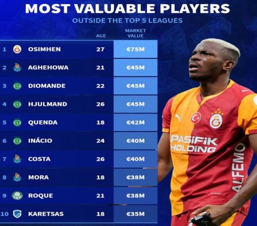 德轉(zhuǎn)列五大聯(lián)賽之外身價(jià)榜:奧斯梅恩7500萬獨(dú)自領(lǐng)跑葡超7將在列