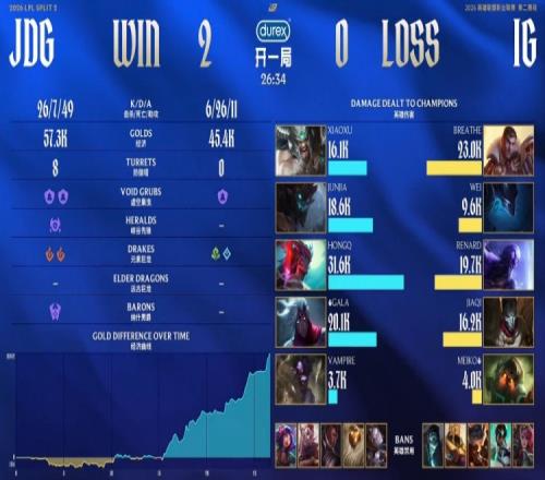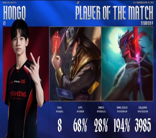 后期比賽失去懸念,正面iG毫無(wú)一戰(zhàn)之力,HongQ永恩與小徐蠻王爆砍iG,JDG一波推平iG基地拿到比賽勝利。