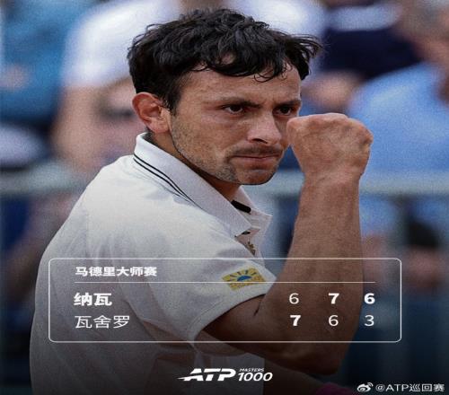 ATP1000馬德里大師賽第二輪:美國選手納瓦21逆轉(zhuǎn)14號種子瓦舍羅