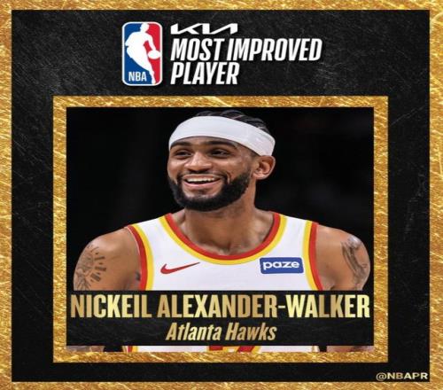 老鷹的尼基爾-亞歷山大-沃克當(dāng)選進(jìn)步最快球員。他力壓活塞的杰倫-杜倫和開拓者的德尼-阿夫迪亞,成功當(dāng)選。他也成為老鷹隊(duì)史第3位進(jìn)步最快球員獎(jiǎng)得主。恭喜沃克!