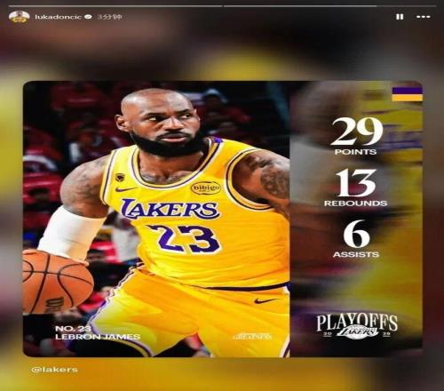 此外,未能出戰(zhàn)的東契奇也在賽后更新社媒,轉(zhuǎn)發(fā)了湖人的贏球海報(bào)以及詹姆斯本場比賽的個人數(shù)據(jù)海報(bào),用這種方式為球隊(duì)和詹姆斯送上祝福與支持。