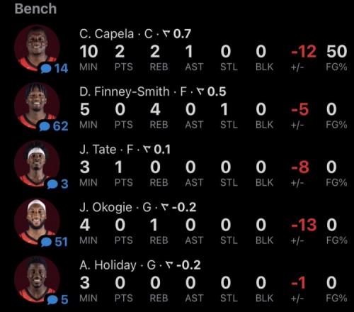 火箭媒體人曬出球隊替補球員數(shù)據(jù)并吐槽道:“火箭這個替補陣容……絕對是NBA季后賽里最爛的替補!”