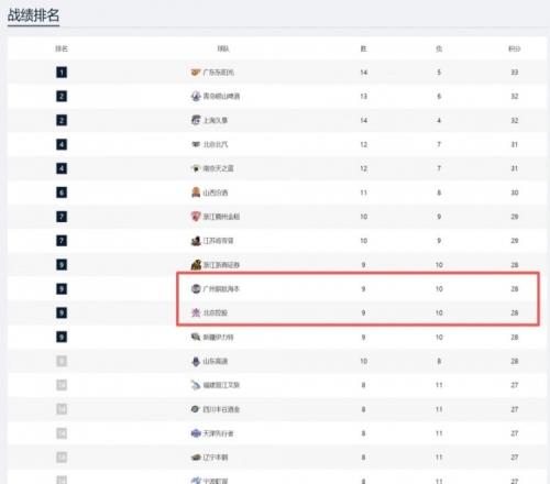 于是,兩隊(duì)的排名依據(jù)就變成了常規(guī)賽相互得失分率,在本賽季北控在與廣州兩次交手結(jié)果分別是以1月客場(chǎng)29分慘敗和4月初主場(chǎng)1分險(xiǎn)勝,所以……才會(huì)有了廣州在北控排名之前。