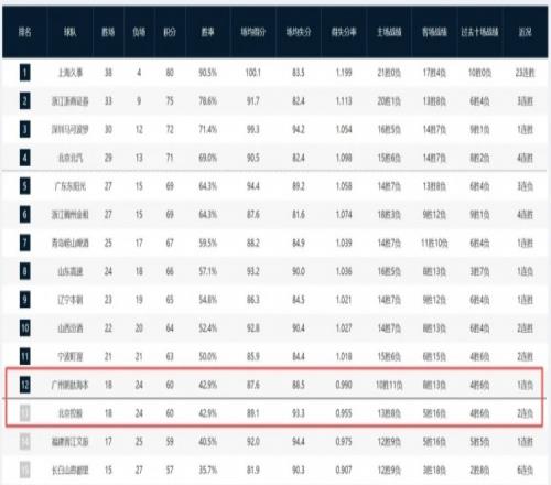 北控和廣州這對(duì)難兄難弟同以18勝24負(fù)積60分,爭(zhēng)奪最后一張季后賽附加賽的門(mén)票……