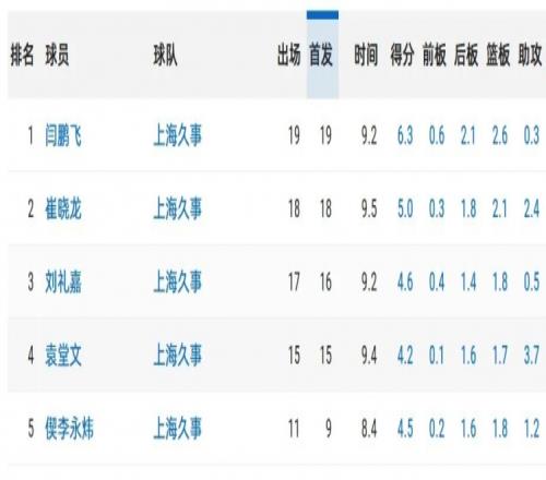 即便如此,潛力賽還是有一部分國(guó)內(nèi)球員打出了不錯(cuò)表現(xiàn),比如目前官方排行榜第一的是來(lái)自福建隊(duì)、前幾年在國(guó)青享有一定知名度但后面遭遇傷病的劉金雨,他共計(jì)出場(chǎng)19場(chǎng)比賽、場(chǎng)均9.9分鐘可以拿下7.1分。