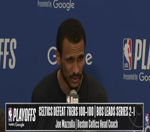 體育播報(bào)4月25日宣 NBA季后賽首輪G3,凱爾特人108-100戰(zhàn)勝76人,大比分2-1領(lǐng)先,賽后馬祖拉接受了媒體采訪,以下為采訪全文。