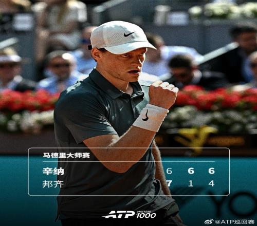 大師賽23連勝!辛納苦戰(zhàn)三盤(pán)逆轉(zhuǎn)邦齊,晉級(jí)馬德里大師賽32強(qiáng)
