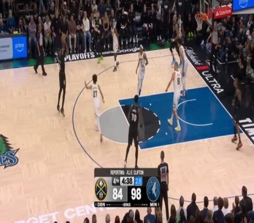 其中第四節(jié),剩下4分半前,掘金從一度落后27分追到只差14分,然而麥克丹尼爾斯挺身而出,他接迪溫琴佐的傳球投進(jìn)一記三分,這也是麥丹這輪系列賽的第一記三分。