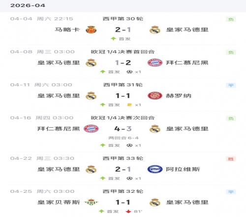 姆巴佩6場(chǎng)首發(fā),皇馬1勝2平3負(fù)↓