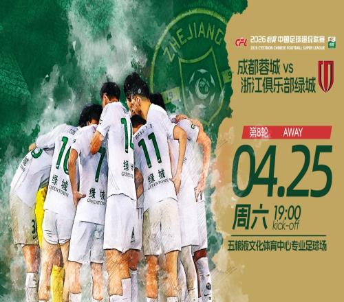 目前,成都蓉城6勝1平積19分位居榜首,浙江2勝2平3負(fù)積3分排名聯(lián)賽第11。