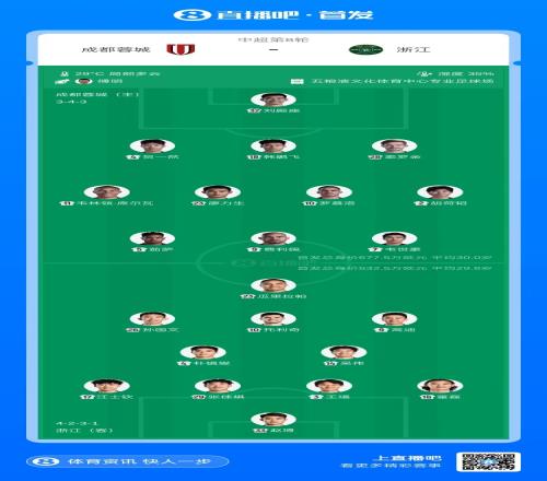 體育播報(bào)04月25日宣 北京時(shí)間19點(diǎn),中超第8輪,成都蓉城主場(chǎng)迎戰(zhàn)浙江。賽前,雙方首發(fā)陣容公布?!颈緢?chǎng)比賽,成都蓉城方面,楊明洋累計(jì)黃牌停賽。浙江方面,王鈺棟本場(chǎng)比賽替補(bǔ)待命】
