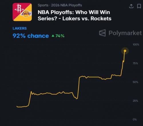 賽后,平臺(tái)更新了系列賽的晉級(jí)概率,湖人晉級(jí)的概率升至92%。